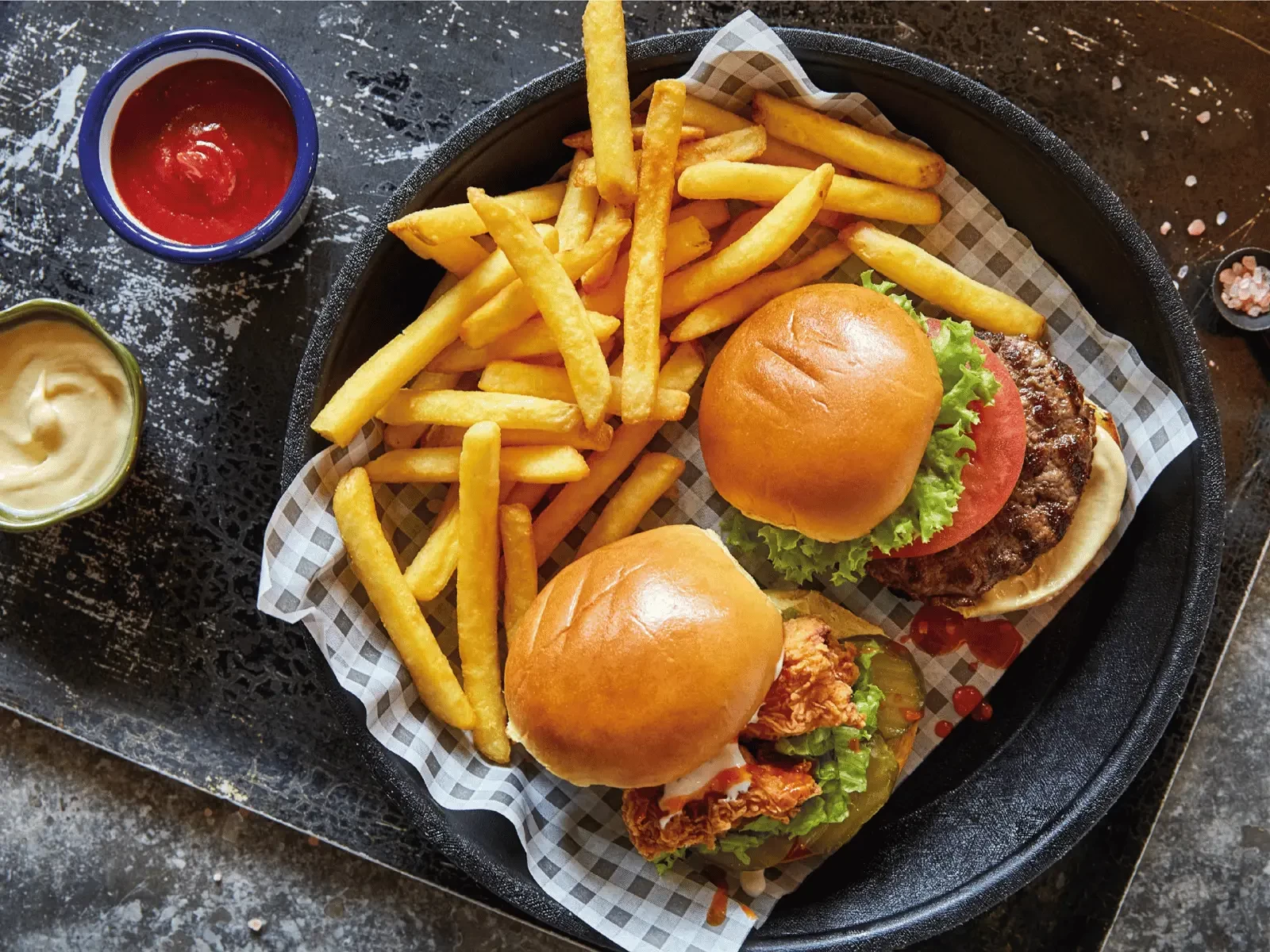But our offerings don't stop there. Sink your teeth into our mouthwatering burgers, savor our grilled platters featuring a selection of meats and accompaniments, or treat the little ones to a delicious Kids Meal tailored just for them.