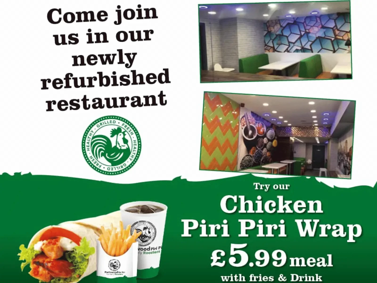 This place is fantastic! Portswood Piri piri Friendly staff and probably the best cheese Chicken wraps Spicy, I could go on. Everything we’ve tried here has been amazing. And the chicken wings test was fantastic. The staff is always so friendly and accommodating. The chairs are very clean and the staff is very friendly... I give them a full five stars